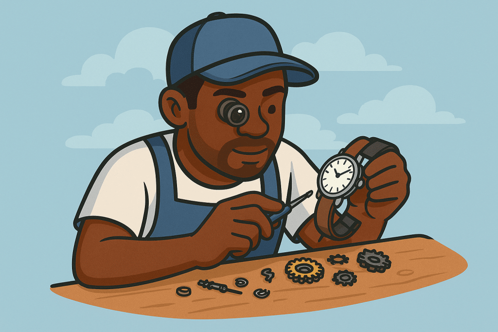 Når du leverer klokken til en profesjonell urmaker, følger de en nøye prosess for å sikre at alt fungerer slik det skal. Dette er stegene: