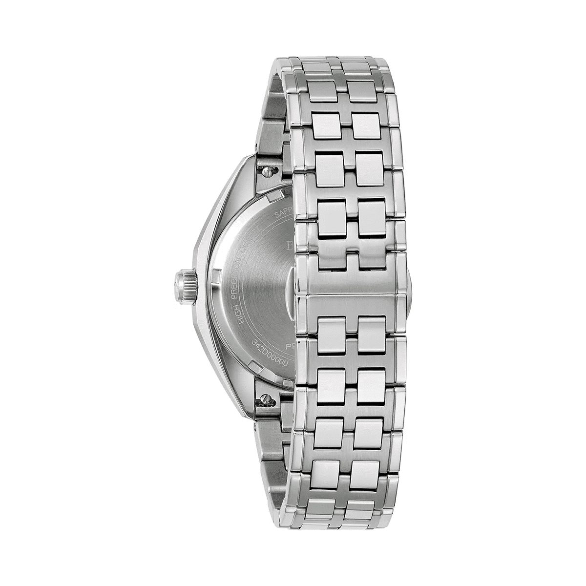 Denne Bulova herreklokken drives av et presist kvartsurverk med frekvens på 262 kilohertz, som gir en jevn og nøyaktig gange. Datovisning klokken tre og tydelige visere gjør den praktisk i hverdagen, samtidig som den beholder et eksklusivt og raffinert uttrykk.