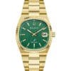 Kassen måler 37.5 mm og gir en balansert passform som fungerer godt på de fleste håndledd. Den to tonede lenken i rustfritt stål og gullfarget overflate gir klokken et sofistikert preg og gjør den enkel å kombinere med både hverdagsantrekk og mer formelle klær. Klokken drives av Bulova sitt presise quartz urverk, kjent for høy nøyaktighet og pålitelighet i daglig bruk. Safirglass beskytter skiven mot riper og bidrar til lang levetid.