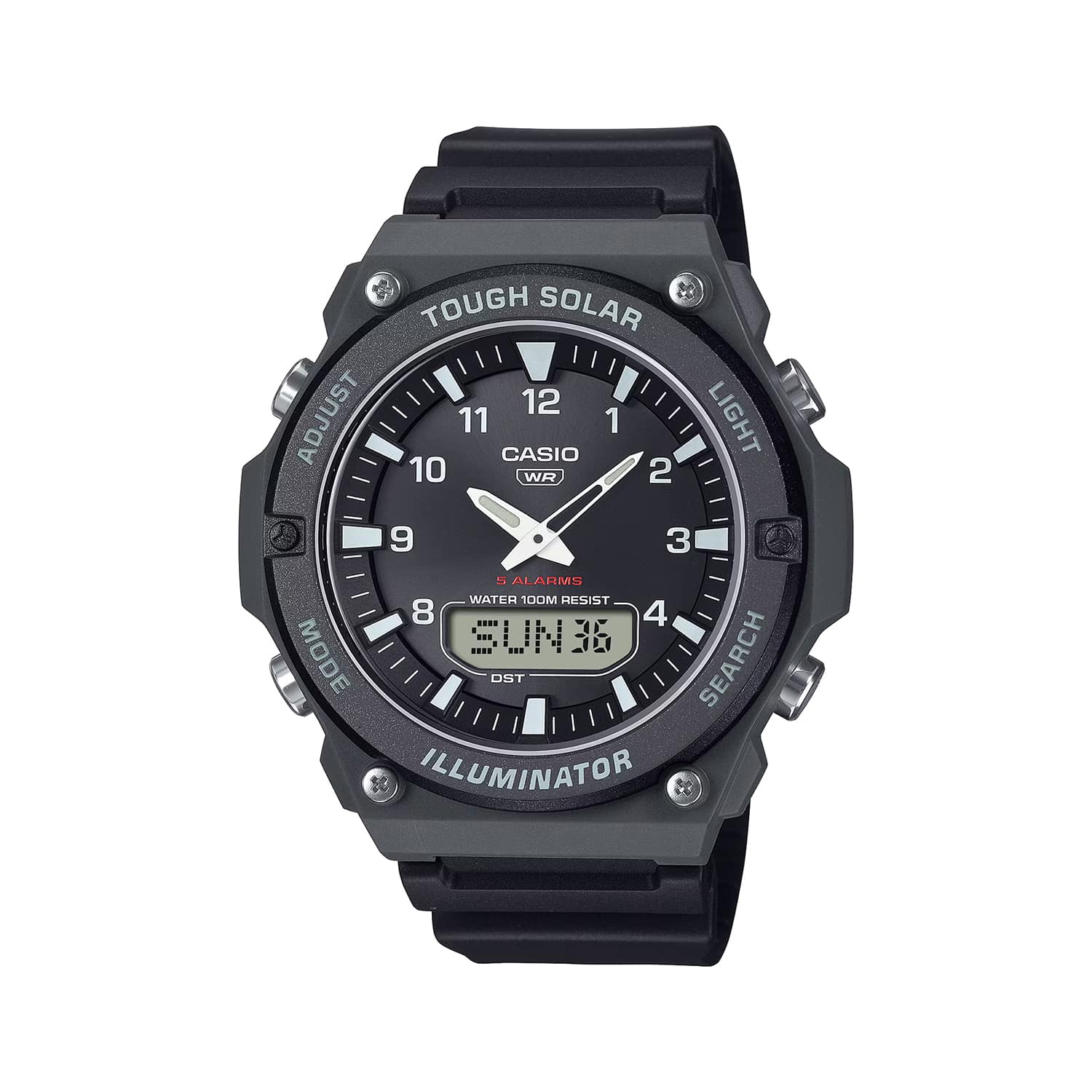 | Funksjoner | Alarm, Dato, Lys, Timer, Verdenstidfunksjon, Automatisk kalender, Energisparing, Stoppeklokke |