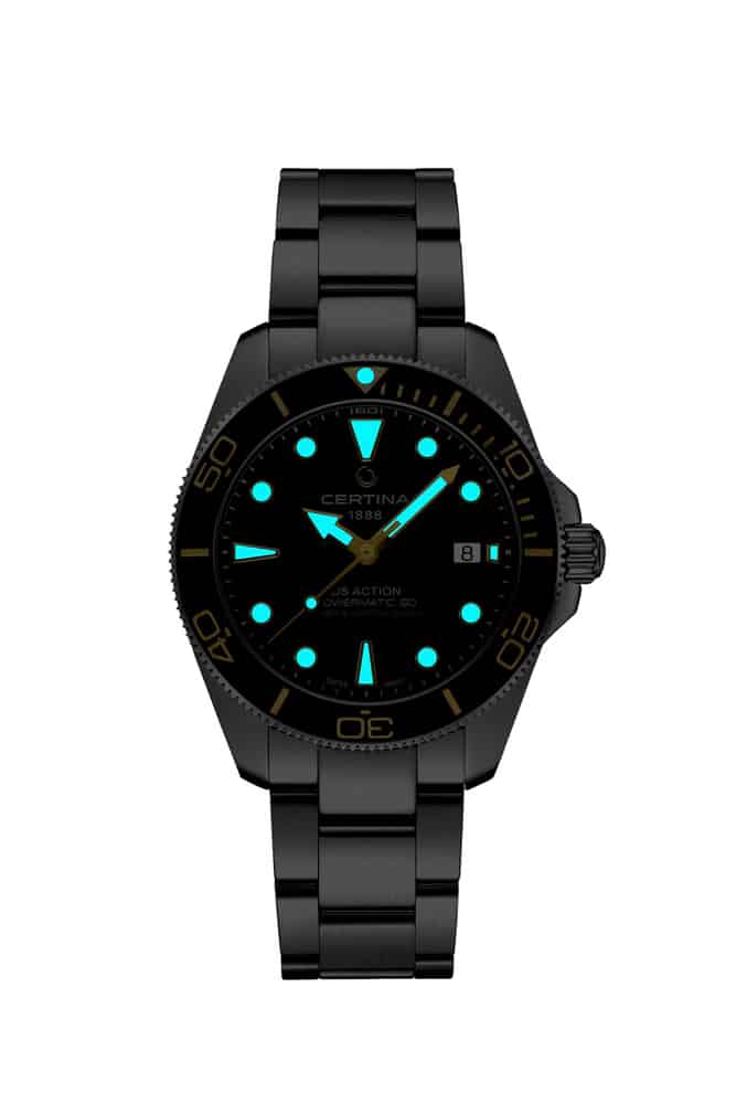 Certina herreklokke C048.407.11.051.01 med sort skive, automatisk Powermatic 80 verk og 300 meters vanntetthet. En solid og stilren dykkerklokke i rustfritt stål.