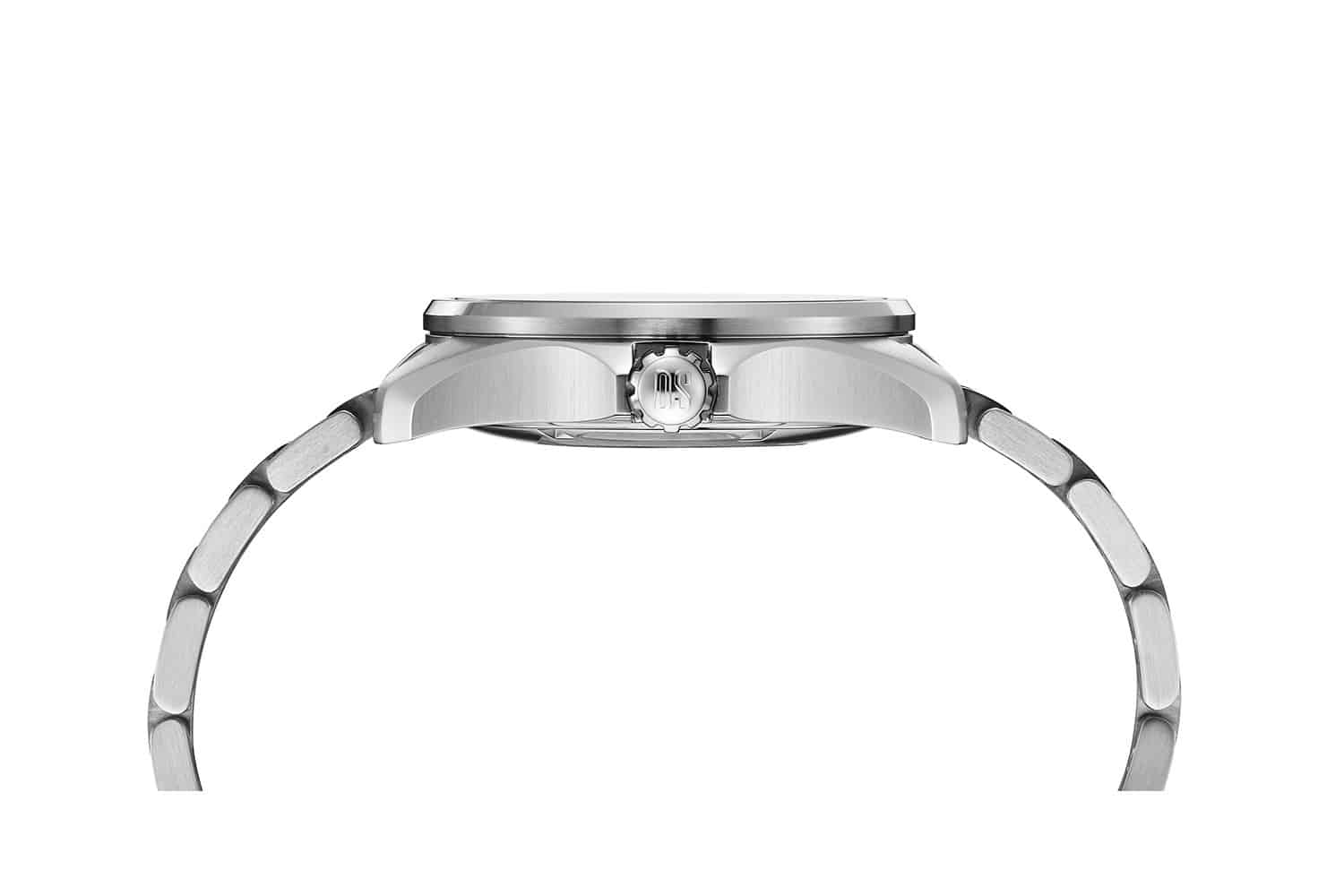 Kassen og lenken er laget i rustfritt stål med børstet og polert finish, og gir klokken et stilrent og tidløst preg. Med en kassediameter på 41 millimeter får du en balansert klokke som sitter godt på de fleste håndledd. Den solide lenken har foldelås med doble trykknapper for ekstra sikkerhet.