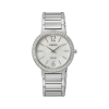 Kassen måler 39 millimeter og er laget i solid rustfritt stål med en sømløs overgang til lenken, noe som gir en balansert og behagelig passform på håndleddet. Den hvite urskiven har tre mørkeblå underskiver som gir dybde og karakter, og er beskyttet av ripebestandig safirglass med antirefleksbelegg på innsiden for optimal lesbarhet i alle lysforhold.